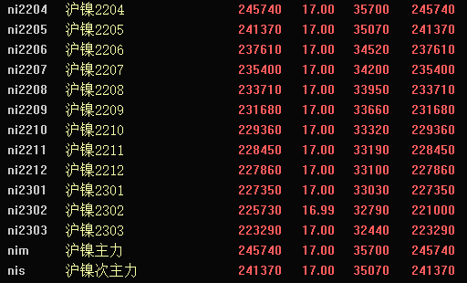 受伦镍大涨影响,3月24日凌晨夜盘,沪镍期货主力合约2204报在涨停价245740元/吨,当晚沪镍期货12个合约全线触及17%当日涨停板。